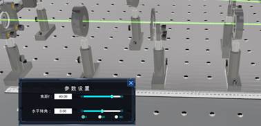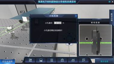 操作过程:双击小孔的中部,打开小孔的细节,右击小孔的底座,打开参数设置,即可调节小孔的大小,带系统显示满足实验要求后即可。小孔越大,透过的光斑越大,不符合实验要求,该步骤实现的是系统自动判断小孔大小是否符合实验要求。